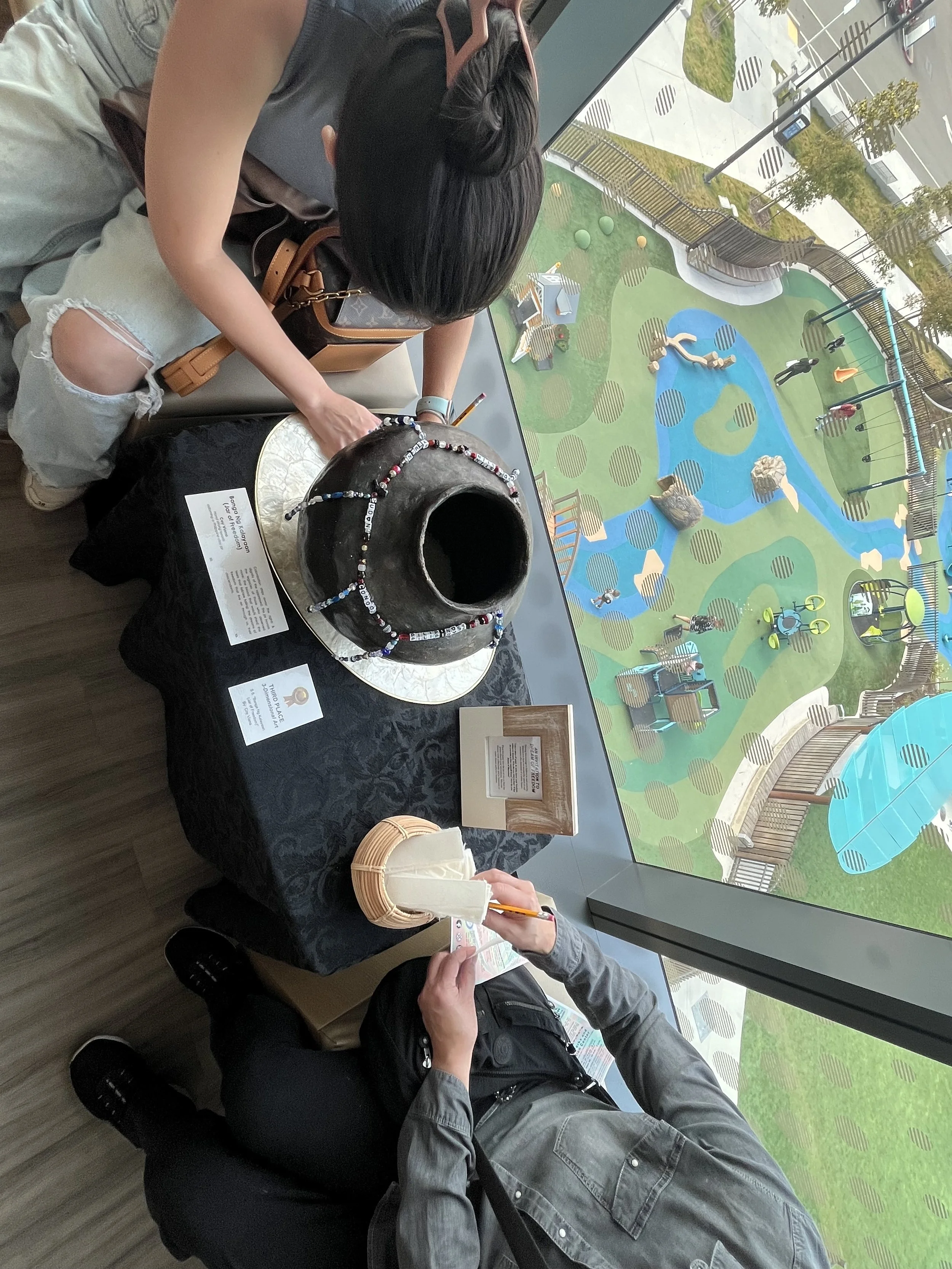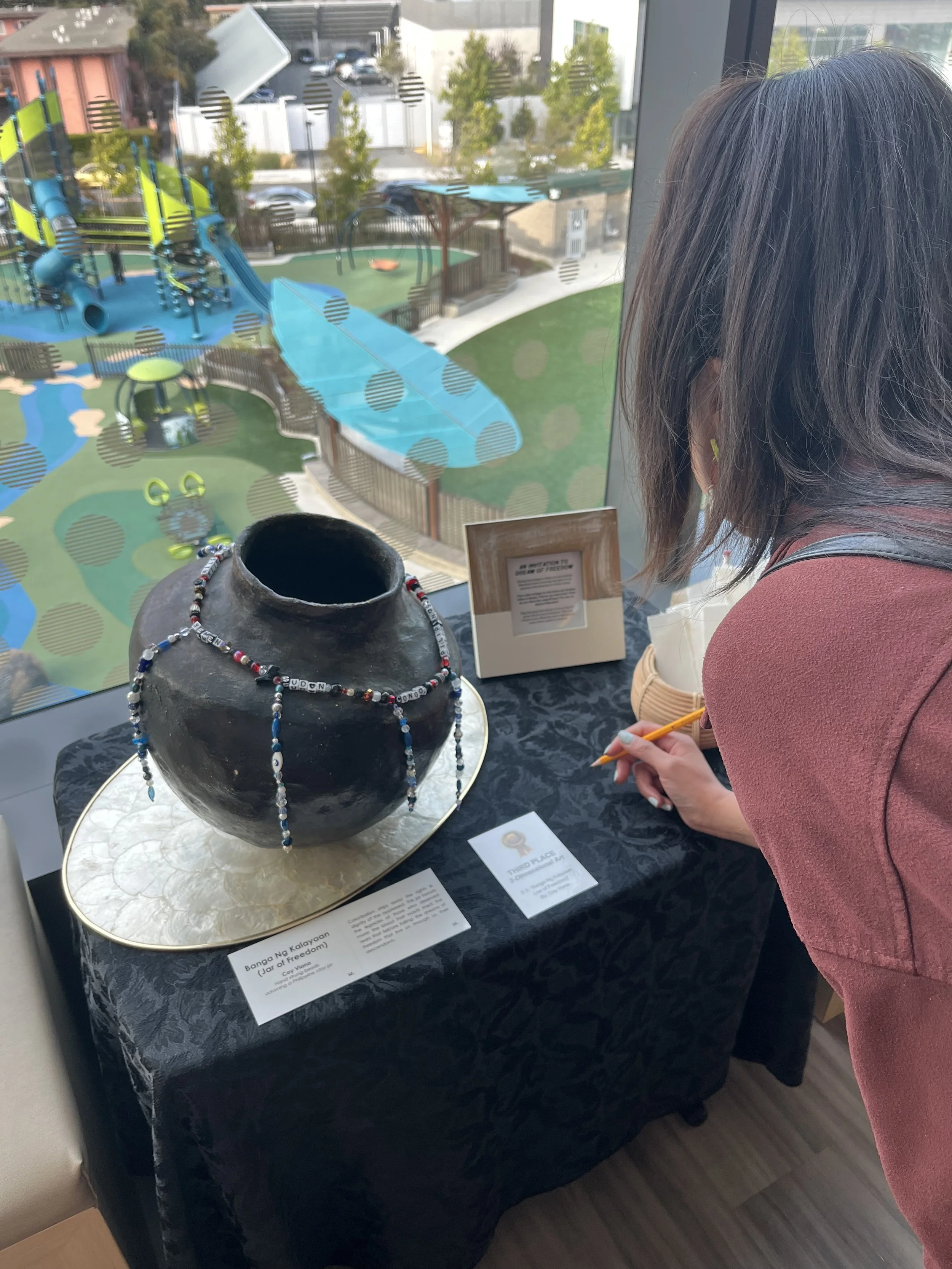 This installation was created for the 2025 South San Francisco Cultural Arts Commission’s exhibit, “Freedom: The Future of Hope” (3rd place winner in 3D art) to invite the community to dream of a better future. It is a dedication to all who’s freedom has been lost, and continues to be lost, at the expense of greed and power tied to settler-colonialism.