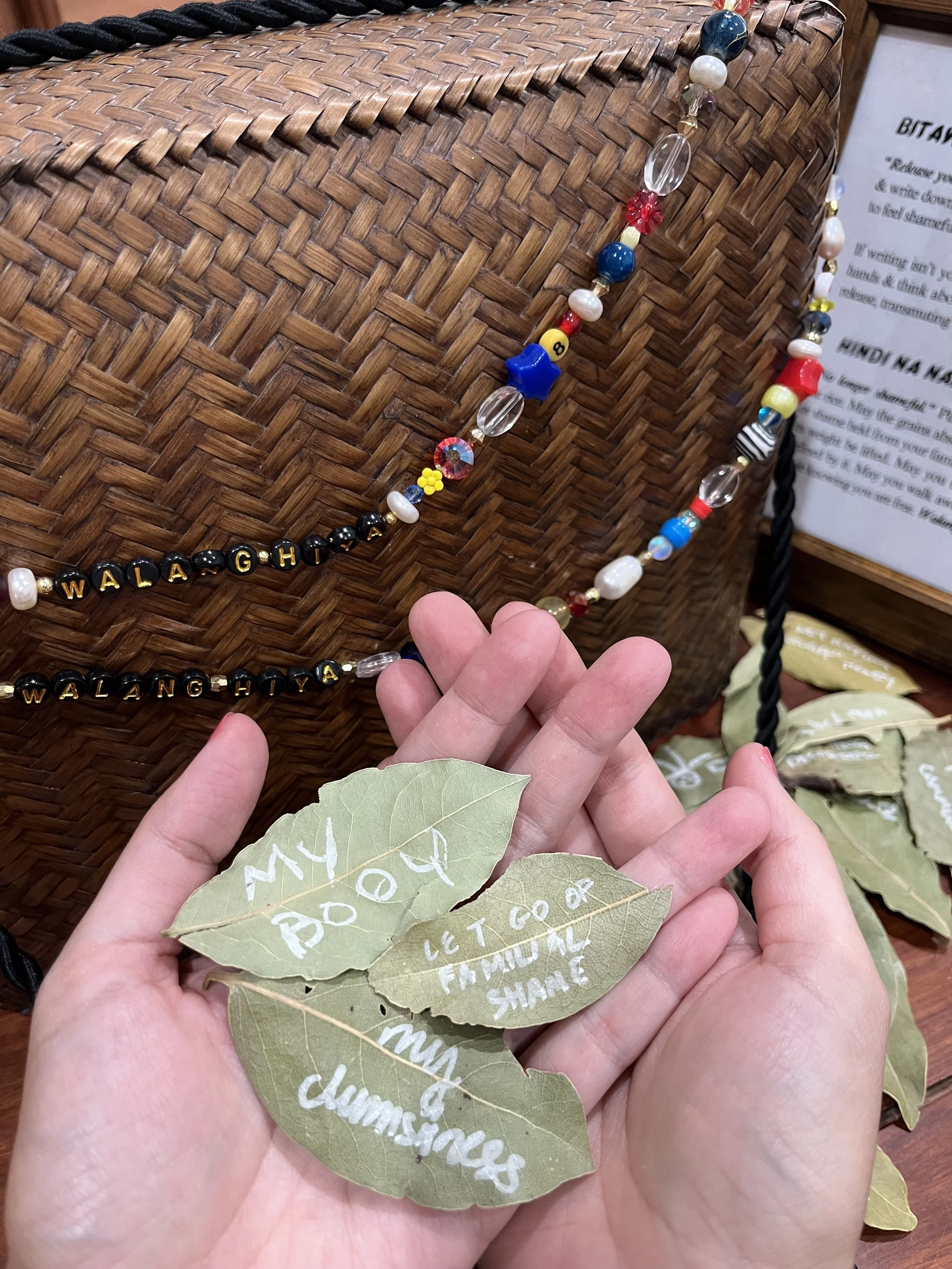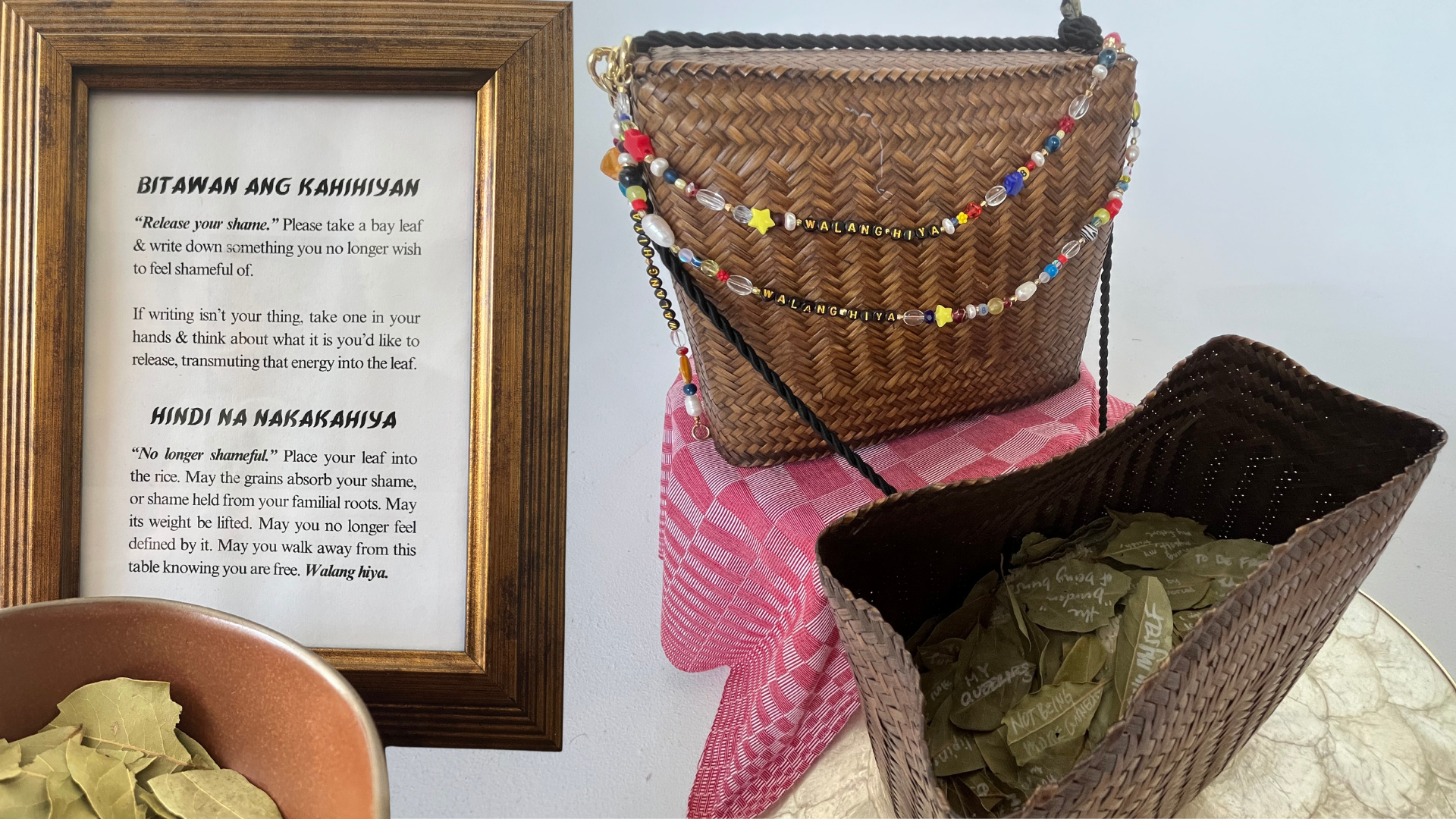 This mixed media installation was inspired by the Filipino concept of “hiya,” developed under post-colonial influence, which translates to “shame” and “embarrassment.” It challenges the individual’s relationship to shame and how it is carried generationally. WALANG HIYA offers a space to reflect on, accept, then release the shames that burden us.