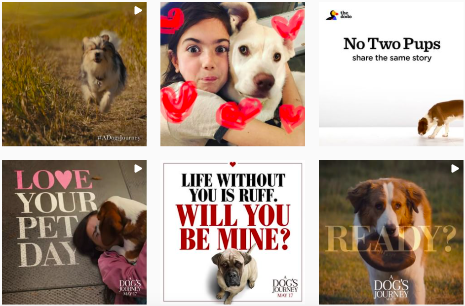 I was brought on the Universal Pictures’ marketing team to single-handedly manage the A Dog’s Journey social presence. From developing a family-friendly tone of voice to executing content from pre-premiere to launch to finally DVD release, I helped create a purposeful space for dog and the series’ lovers to unite and share their excitement for the film.